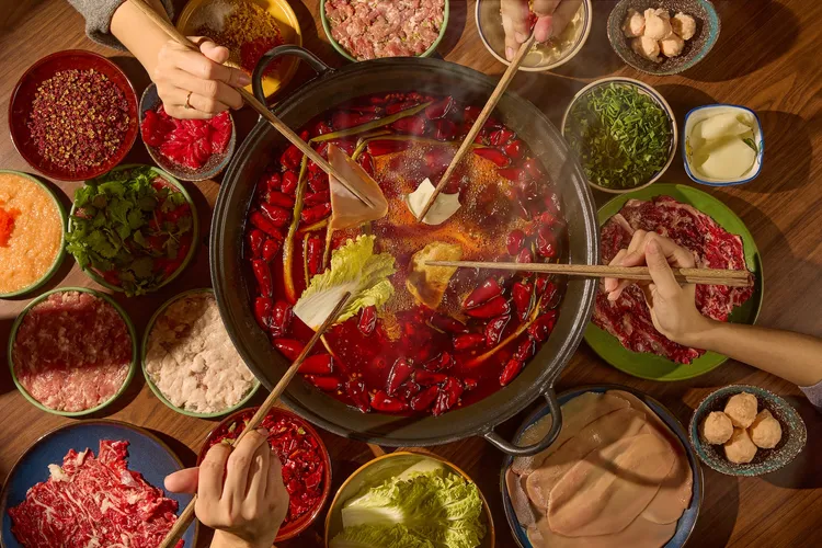 讲求食材本质的「八秒马铃薯丝」,将刨成细丝的马铃薯下锅速涮八秒,能够保留马铃薯本身的清脆爽口,对比汤头更显趣味。另外还有来自台湾老舖、秉持职人手艺制作的「鹿港砂虾丸」、「鹿港剑虾丸」、「南门手工蛋饺」等火锅配料,不仅增添丰富性,同时让食客享受台湾火锅料与成都锅底碰撞而生的绚烂火花。