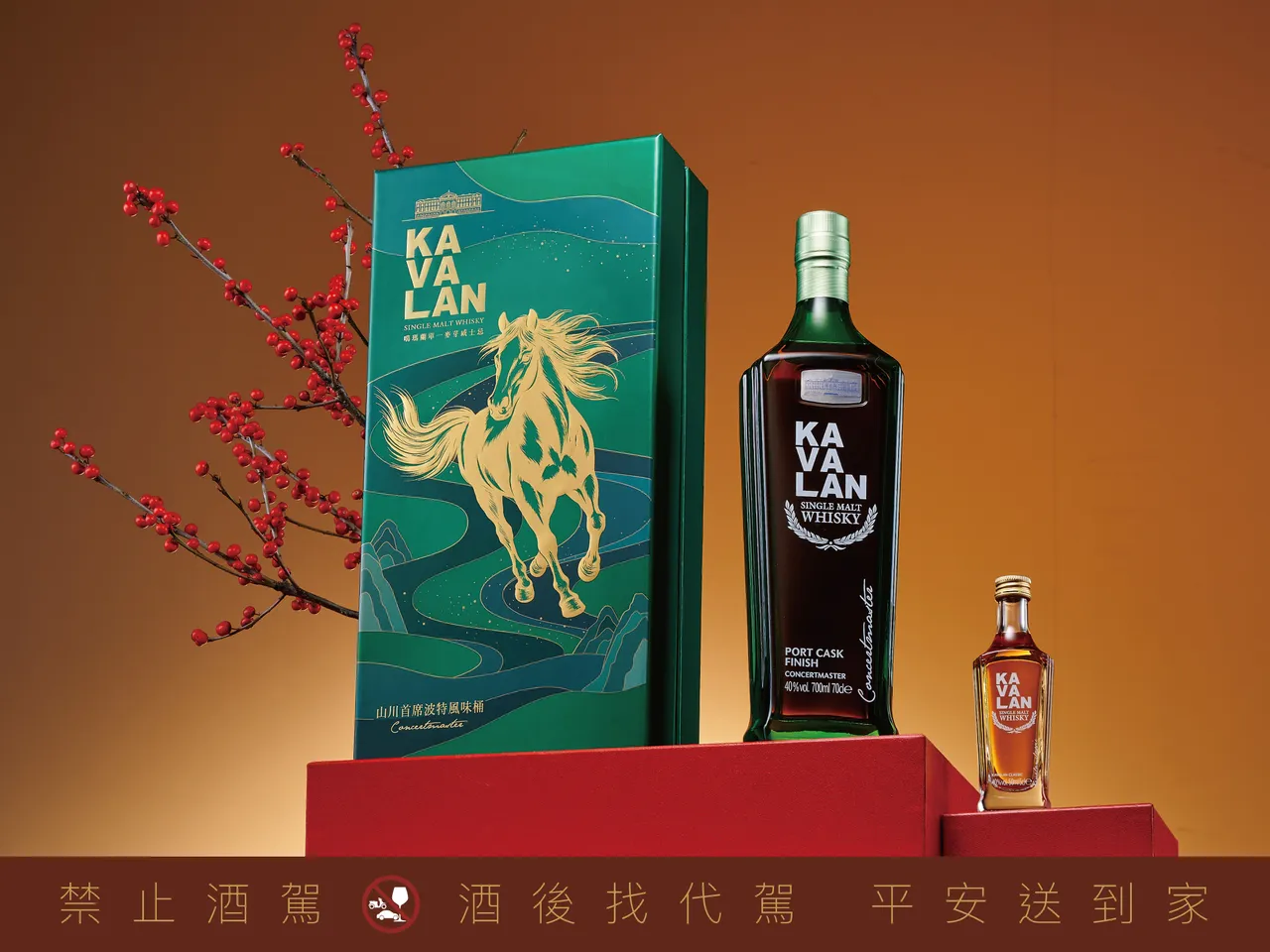 噶玛兰威士忌以经典热销酒款打造马年年度礼盒:「噶玛兰山川首席波特风味桶 单一麦芽威士忌」,其山川首席波特风味桶为噶玛兰首次尝试过桶工艺之经典酒款,来自葡萄牙波特酒桶所淬炼出的出众风味,遇上台湾噶玛兰酒厂所赋予的独有个性,造就如丝绸般滑顺的暖棕红色酒液,带著清新莓果香气及蜂蜜与棉花糖的醇柔蜜香,整体酒感饱满宛若于喉韵萦绕和谐的交响乐音,与中式且带油脂的餐点十分搭配。礼盒外观设计结合「山之沉稳、川之流动」的金马奔腾气势,有著于新年启程、汲取山川之力,迎向希望与福气新篇章的吉祥寓意,展现礼盒的艺术气息与文化底蕴,为兼具真挚情感与独特品味的送礼佳选。