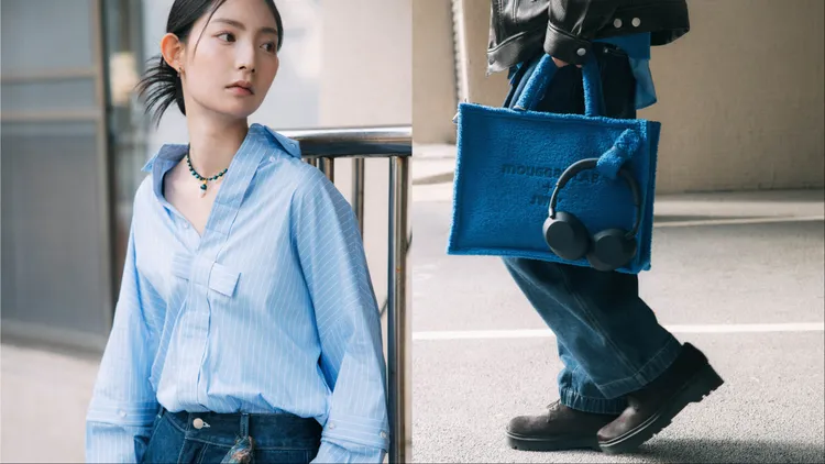 本系列以创作者的日常状态出发,打破性别藩篱,推出涵盖风衣、开襟衫、皮外套、丹宁裤、毛绒包共11款单品,色调上以洗炼深蓝、灰与象牙白为主基调,并穿插黄薇品牌JWH经典的蓝,勾勒出冷静却不失温度的当代氛围。身为主打款的「LAB+JWH 风衣」,透过可拆式蝴蝶结、立体领片与袖型变换打造弹性风格;相同的解构设计也运用于钮扣衬衫,胸前蝴蝶结更可自由变为放置位置。