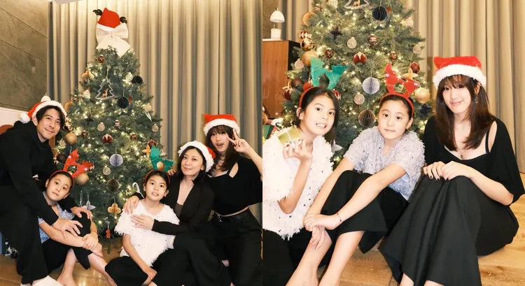 梧桐妹(Angel)在IG发文,写下「圣诞节快乐呀」,只见他们一家五口坐在圣诞树前合影,修杰楷穿著休闲、头戴圣诞帽现身,对镜头露出微笑,而一旁的贾静雯素颜入镜,状态依旧维持相当好。
