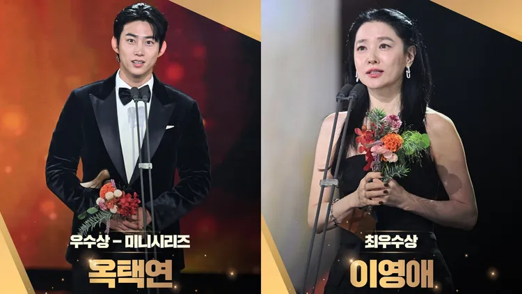 年度大奖颁给《拜托老鹰5兄弟!》安在旭及严志媛,2人提到去年的大奖得主李顺载都忍不住落泪。李英爱以《恩秀的好日子》拿下最优秀女演员奖,感性表示:「本来应该在这个场合、从我出道开始就给我非常大支持的李顺载老师、今年与世长辞的金芝美老师,以及我最深爱的尹石花姐姐,希望他们能安息。」她表示该剧虽然题材很沉重,但她不想错过,因此鼓起勇气,才能站在这里。