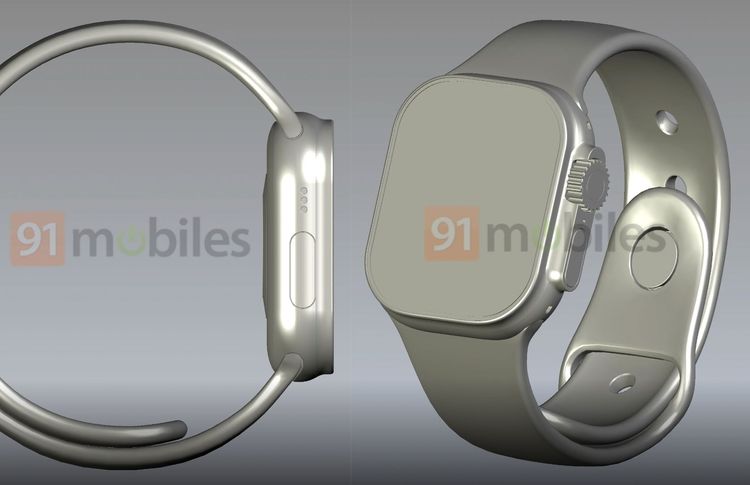 据外媒 91 mobiles 分享的 Apple Watch Pro CAD(电脑辅助设计)渲染图,抢在 Apple 发表会前让外界一窥新手表的全新设计,包括更大的平面萤幕、新增的物理按键,以及右侧凸出外壳的数位表冠和侧边按钮。
