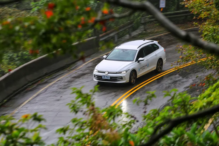 Golf Variant 280 eTSI低速起步顺畅、高速巡航沉稳,市区与山路驾驭都能感受到线性动力与精准油门反馈。林浩升摄