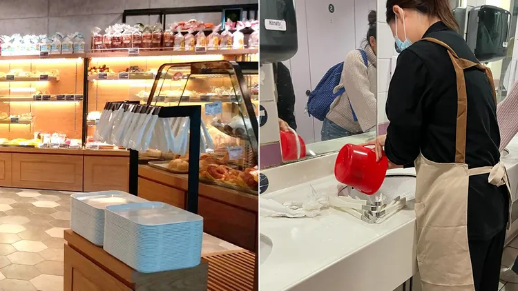 据《香港01》报导,民众目击的事件发生在港铁站内山崎面包分店,女店员拿著多个面包夹到公共厕所清洗,洗完后就直接放在台面上。网友们抨击,公厕洗手台可能有著各种细菌,「太恶心了!我宁愿她不要洗」、「至少用个托盘吧」,也有人说用托盘也不干净,有的业者擦桌子、擦托盘,用的都是同一块抹布。