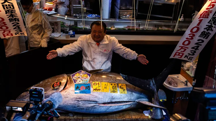 「寿司三昧」社长木村清表示:「希望日本的各位就算只吃上一口,也能因此感到元气满满。」据悉,这条5亿日圆的黑鲔鱼将于下午举行解体秀,之后分送至各分店,以与平时相同的价格提供顾客品尝。