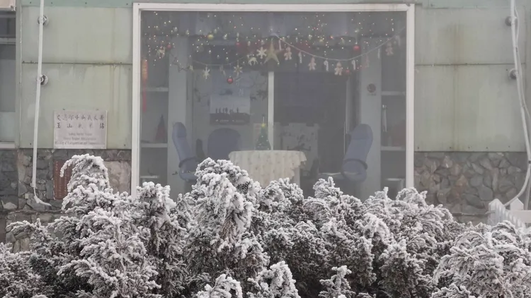 中央气象署指出,在低温配合水气之下,今日中部和花莲3000公尺以上高山,以及北部和宜兰2000公尺以上山区等,都有局部降雪、下冰霰、结冰等机率,若前往高山还请留意路面湿滑及结冰现象。