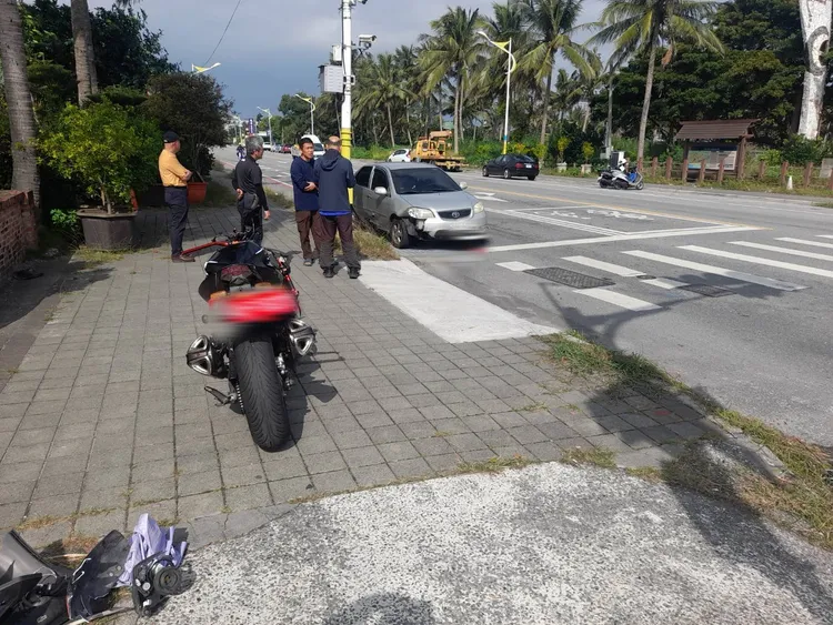 警方初步调查,骑乘大型红牌重机车的徐男,今天上午7时多,由花莲市南滨路直行一路南下,行经花莲市南滨和平路口时,疑似闯红灯,不慎与左转至和平路的小轿车发生擦撞意外。
