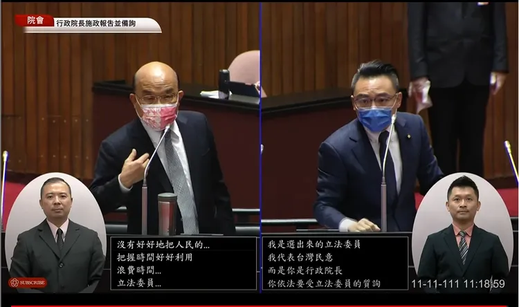 洪孟楷火力全开抨击,民意代表代表台湾2350万人站在这边,你以为是在跟民意代表呛声,其实你就是对台湾人民呛声。苏贞昌驳斥说自己好好回答,是你在打断,你要问又不给我回答,自说自话。