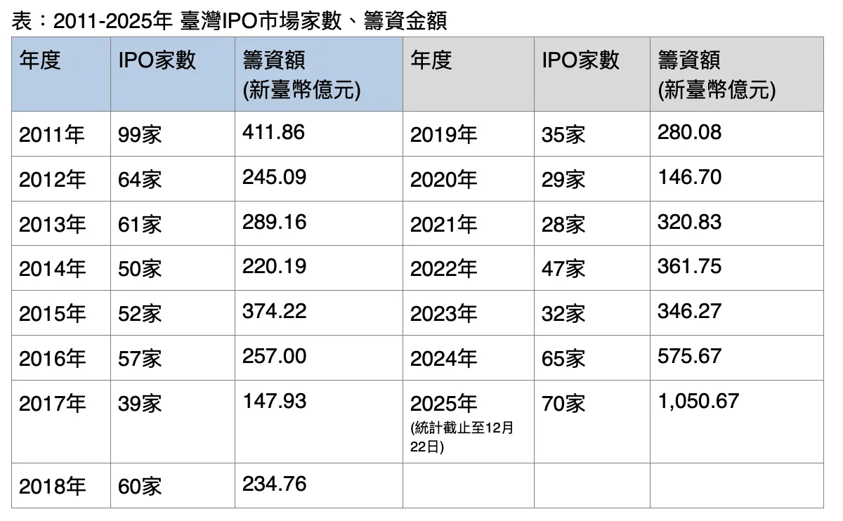 整体来看,2025年台湾上市柜企业中,半导体产业共11家,筹资总额475亿元,居各产业之首;另有81家企业申请兴柜,集中于生技医疗、其他电子及半导体产业,多层次资本市场发展趋势持续深化。