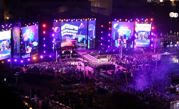 东区顶好广场以「节奏不关机」为主题。图为2025跨年晚会多元舞台/台北市观传局提供