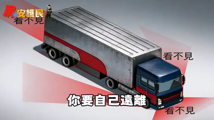 警察局表示,与大型车保持足够距离,尤其在跟车、变换车道或煞车时,能为双方保留反应时间;停等红灯时,切勿停在大型车前方或两侧,应保留安全空间并随时留意车辆动态,降低突发风险。